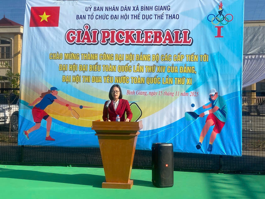Việc khởi tranh thi đấu môn Pickleball, trong khuôn khổ Đại hội Thể dục thể thao xã Bình Giang lần thứ I, không chỉ khuyến khích phong trào rèn luyện thể dục, thể thao, nâng cao sức khỏe, mà còn hưởng ứng Cuộc vận động “Toàn dân rèn luyện thân thể theo gương Bác Hồ vĩ đại”, xây dựng con người phát triển toàn diện, đáp ứng yêu cầu trong thời kỳ mới.