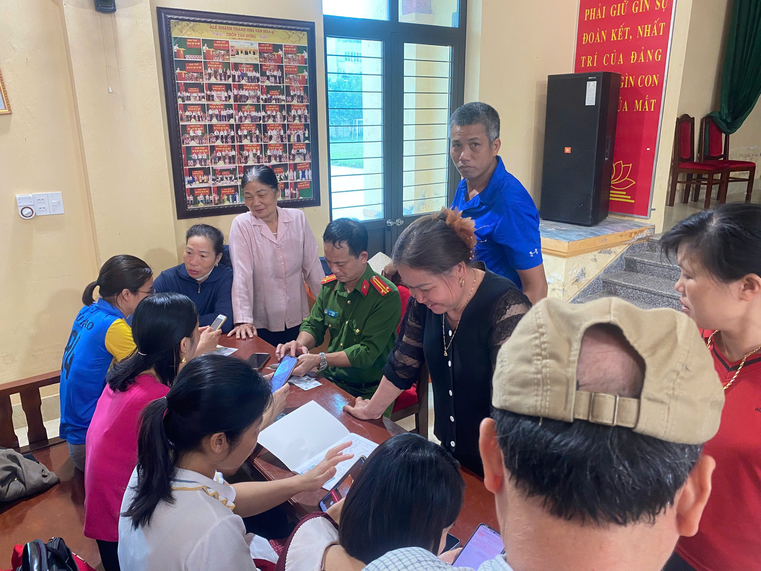 Tại nhà văn hoá các thôn, các tổ công nghệ số cộng đồng đang hướng dẫn nhân dân cài đặt và kích hoạt sổ tay điện tử trên ứng dụng VNeID. Đến nay đã có nhiều người dân được kích hoạt số tay sức khỏe điện tử trên ứng dụng VNEID.