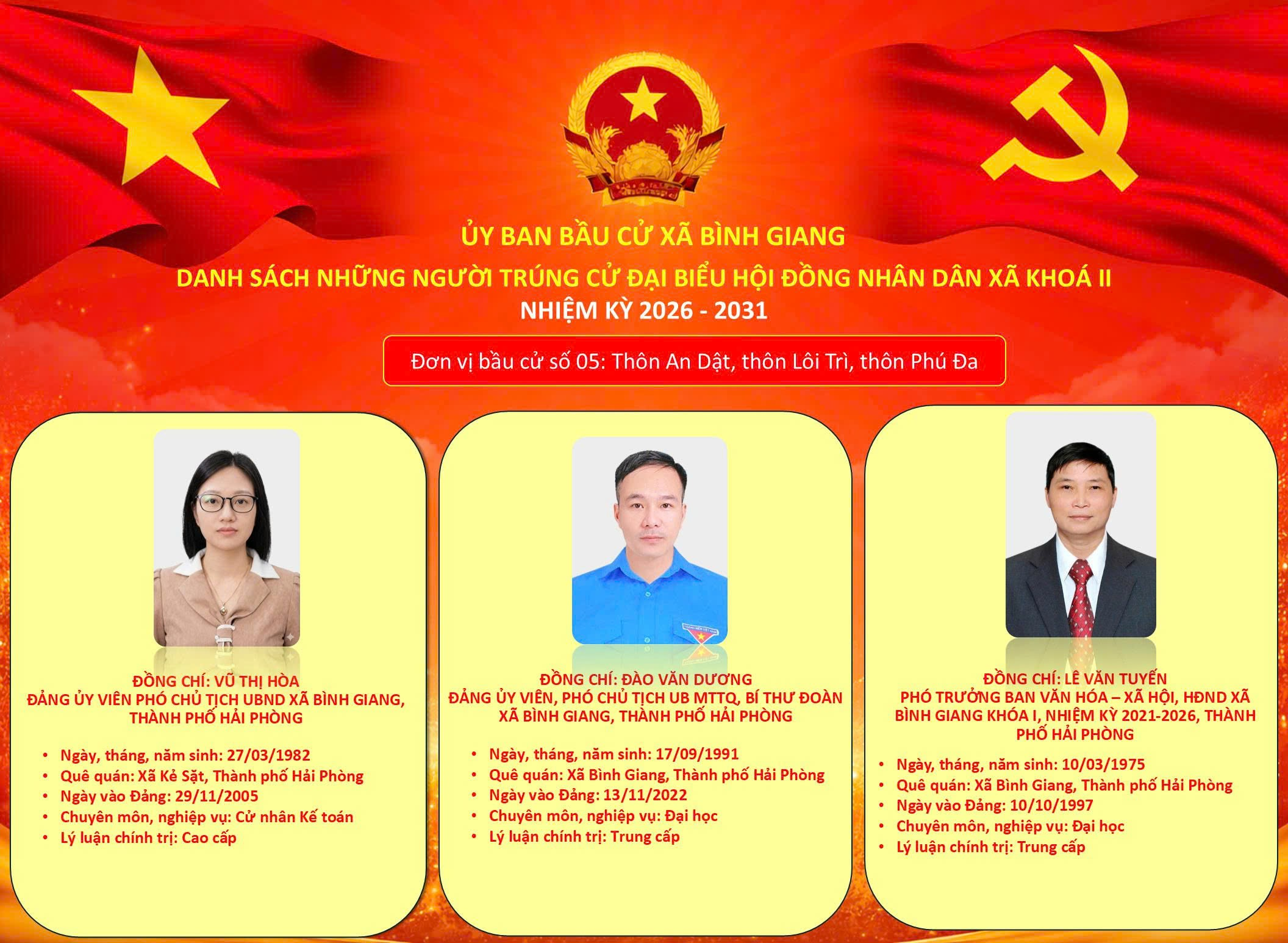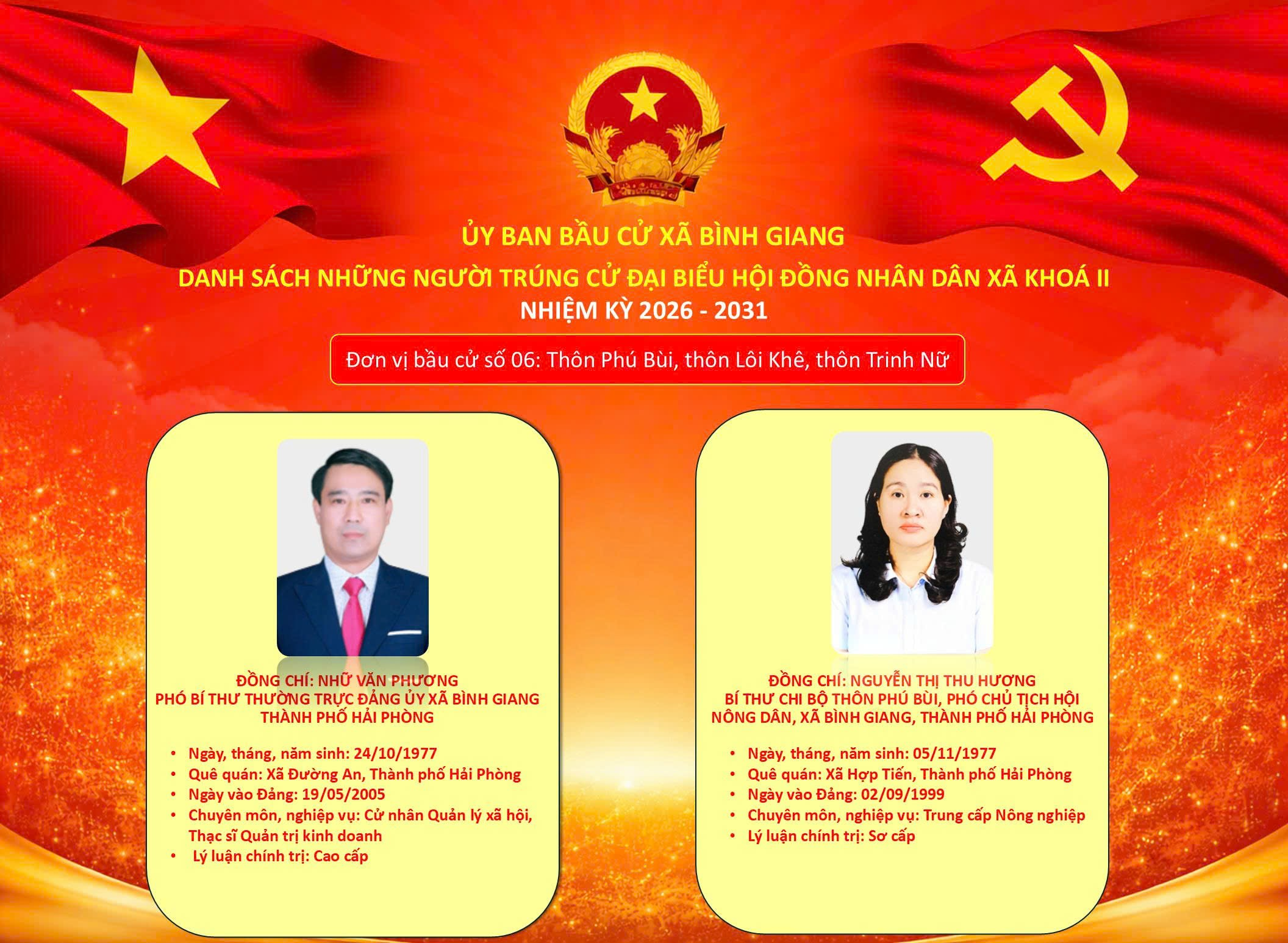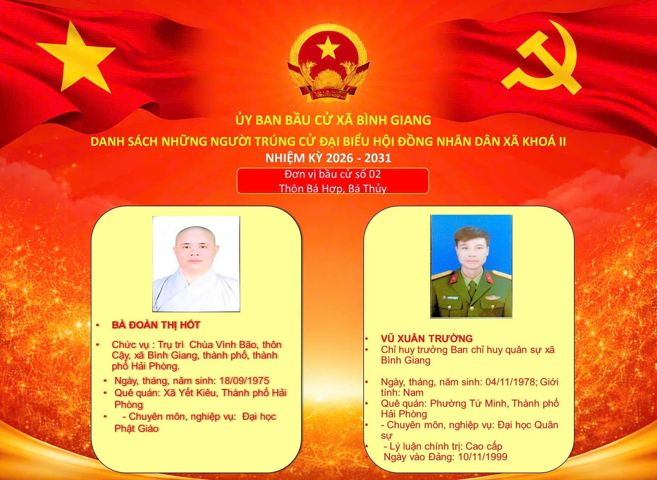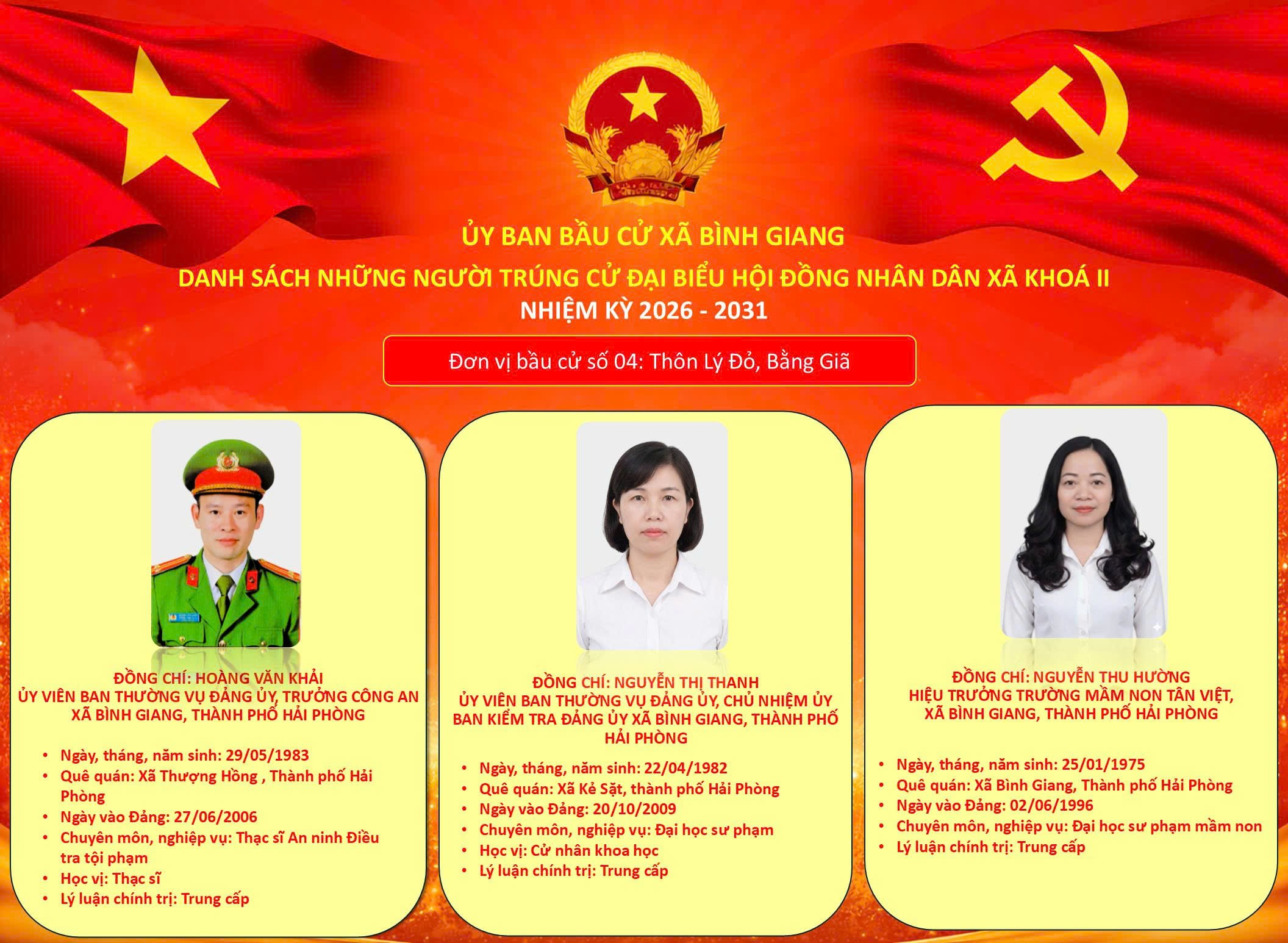 Danh sách những người trúng cử đại biểu HĐND xã Bình Giang khóa II, nhiệm kỳ 2026-2031 theo từng đơn vị bầu cử: