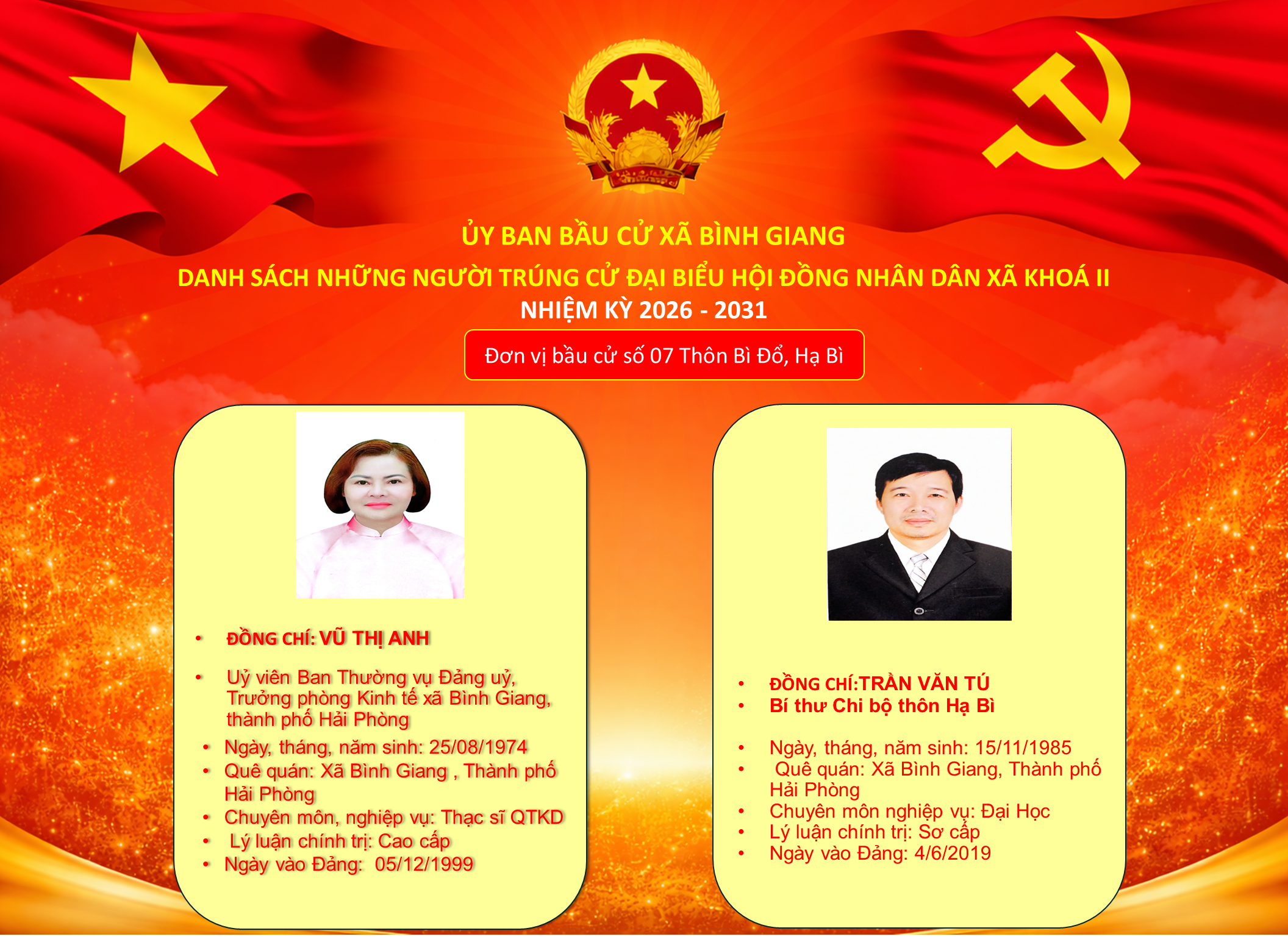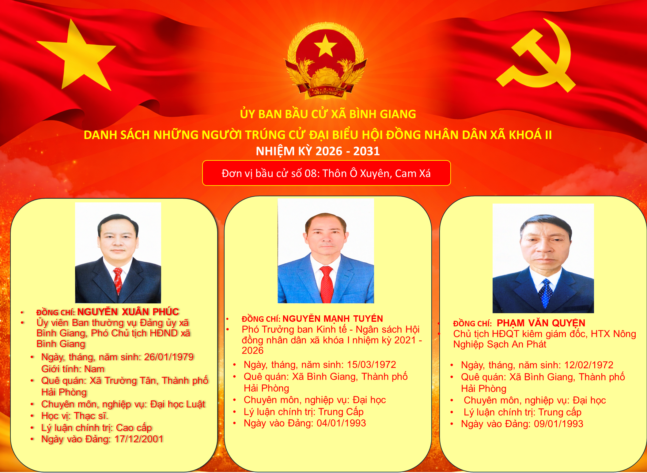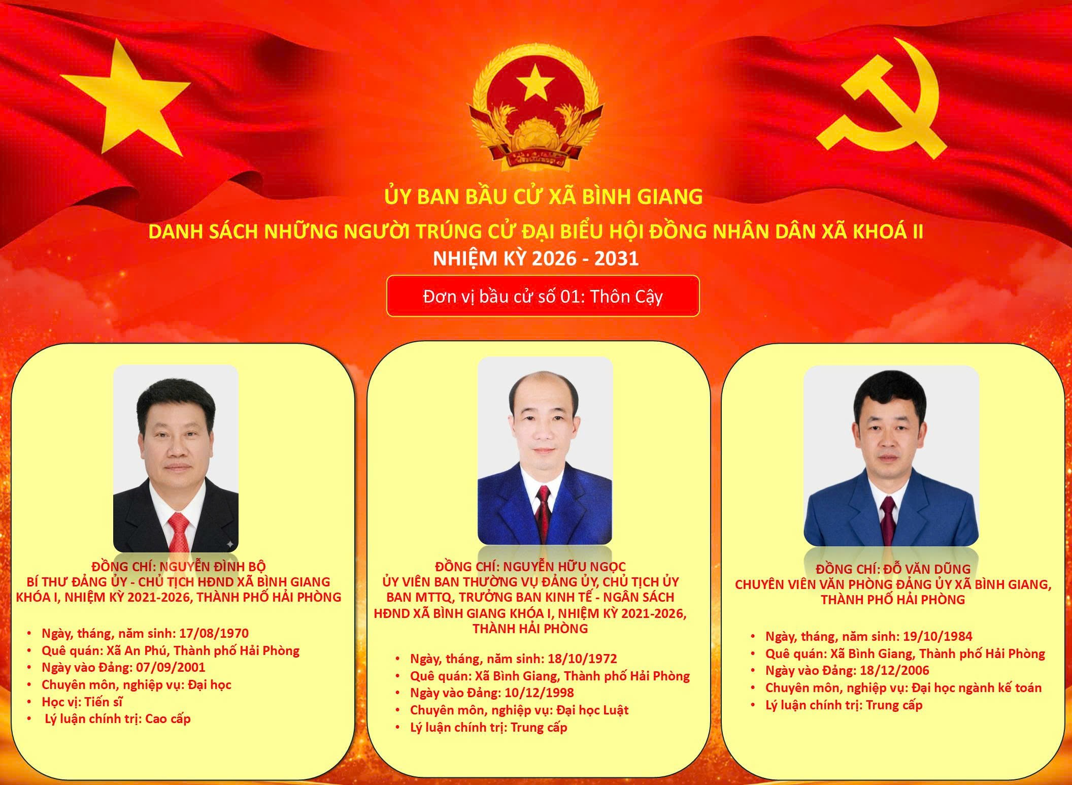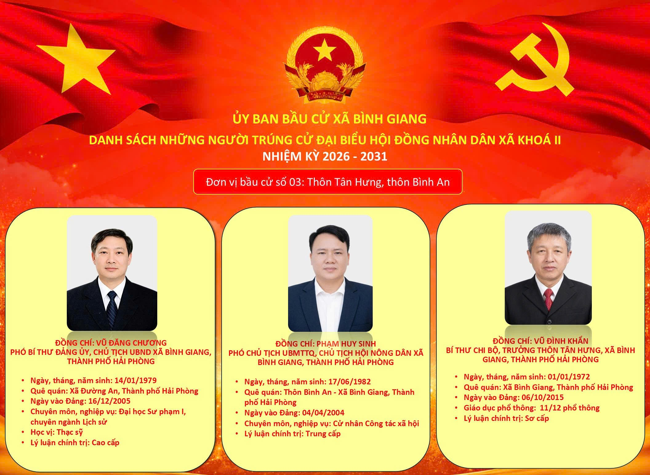 Danh sách những người trúng cử đại biểu HĐND xã Bình Giang khóa II, nhiệm kỳ 2026-2031 theo từng đơn vị bầu cử: