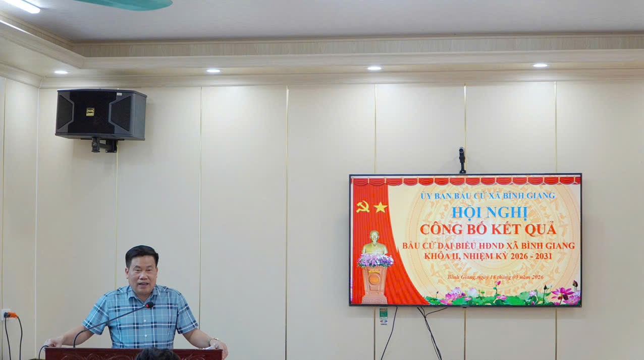 UỶ BAN BẦU CỬ XÃ BÌNH GIANG TỔ CHỨC HỘI NGHỊ CÔNG BỐ KẾT QUẢ BẦU CỬ ĐẠI BIỂU HĐND XÃ NHIỆM KỲ 2026–2031