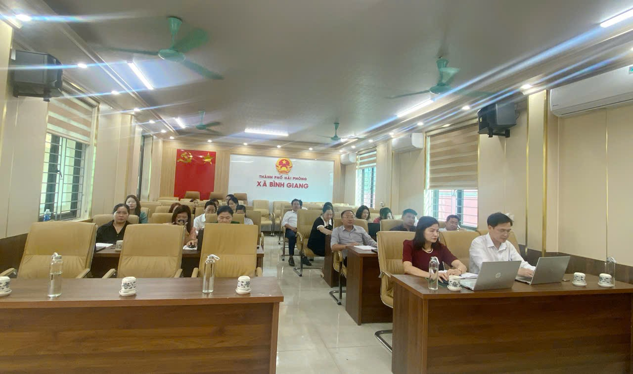Sáng ngày 25/3/2026, tại phòng họp UBND xã Bình Giang, Ban Chỉ đạo điều tra cơ sở hành chính, sự nghiệp năm 2026 của xã đã tổ chức tham dự Hội nghị trực tuyến tập huấn nghiệp vụ và ứng dụng công nghệ thông tin trong điều tra cơ sở hành chính, sự nghiệp năm 2026 do Bộ Nội vụ tổ chức.