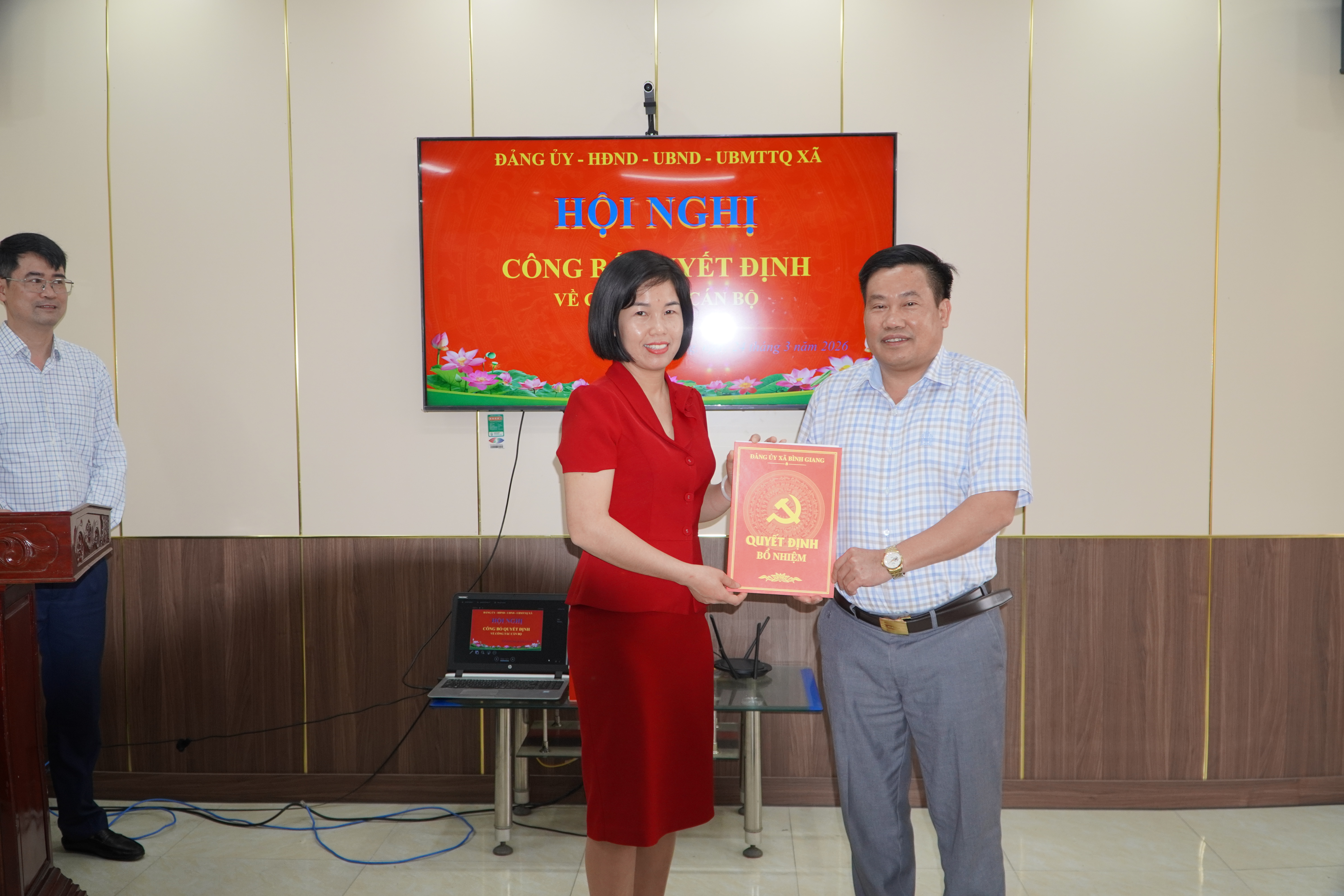 Chiều ngày 24/03 năm 2026, Đảng ủy xã Bình Giang tổ chức Hội nghị công bố Quyết định về công tác cán bộ chủ chốt của Ban Xây dựng Đảng. Tham dự Hội nghị có đồng chí Nguyễn Đình Bộ, Bí thư Đảng ủy, Chủ tịch HĐND xã; đồng chí Như Văn Phương, Phó Bí thư Thường trực Đảng ủy xã; đồng chí Vũ Đăng Chương Phó Bí thư Chủ tịch UBND xã; các đồng chí trong Thường trực HĐND, lãnh đạo UBND xã, đại diện các phòng, ban, cơ quan cùng toàn thể cán bộ, chuyên viên Ban Xây dựng Đảng, UBKT Đảng Ủy đã về dự.