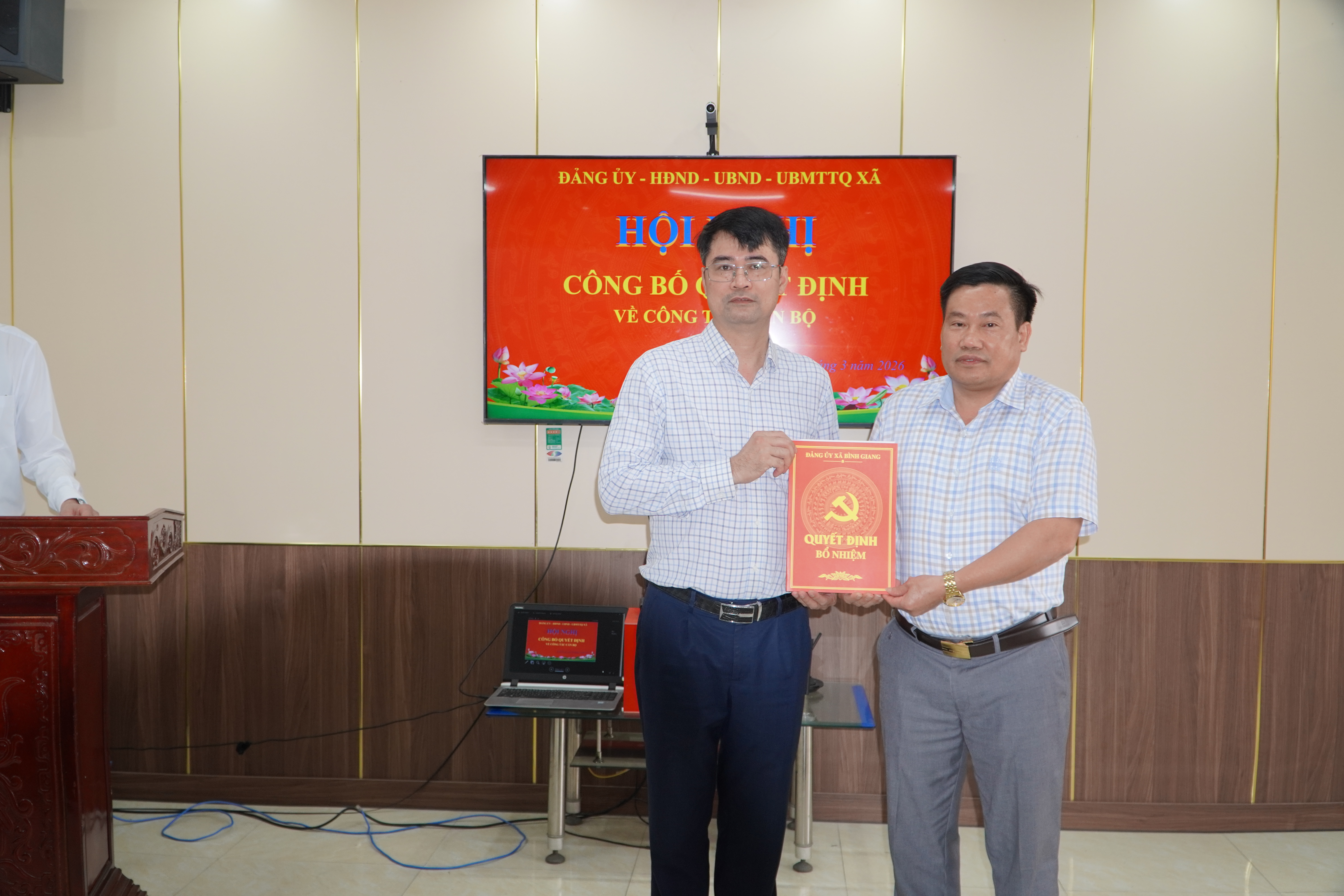 Đảng ủy xã Bình Giang Hội nghị công bố các quyết định về công tác cán bộ