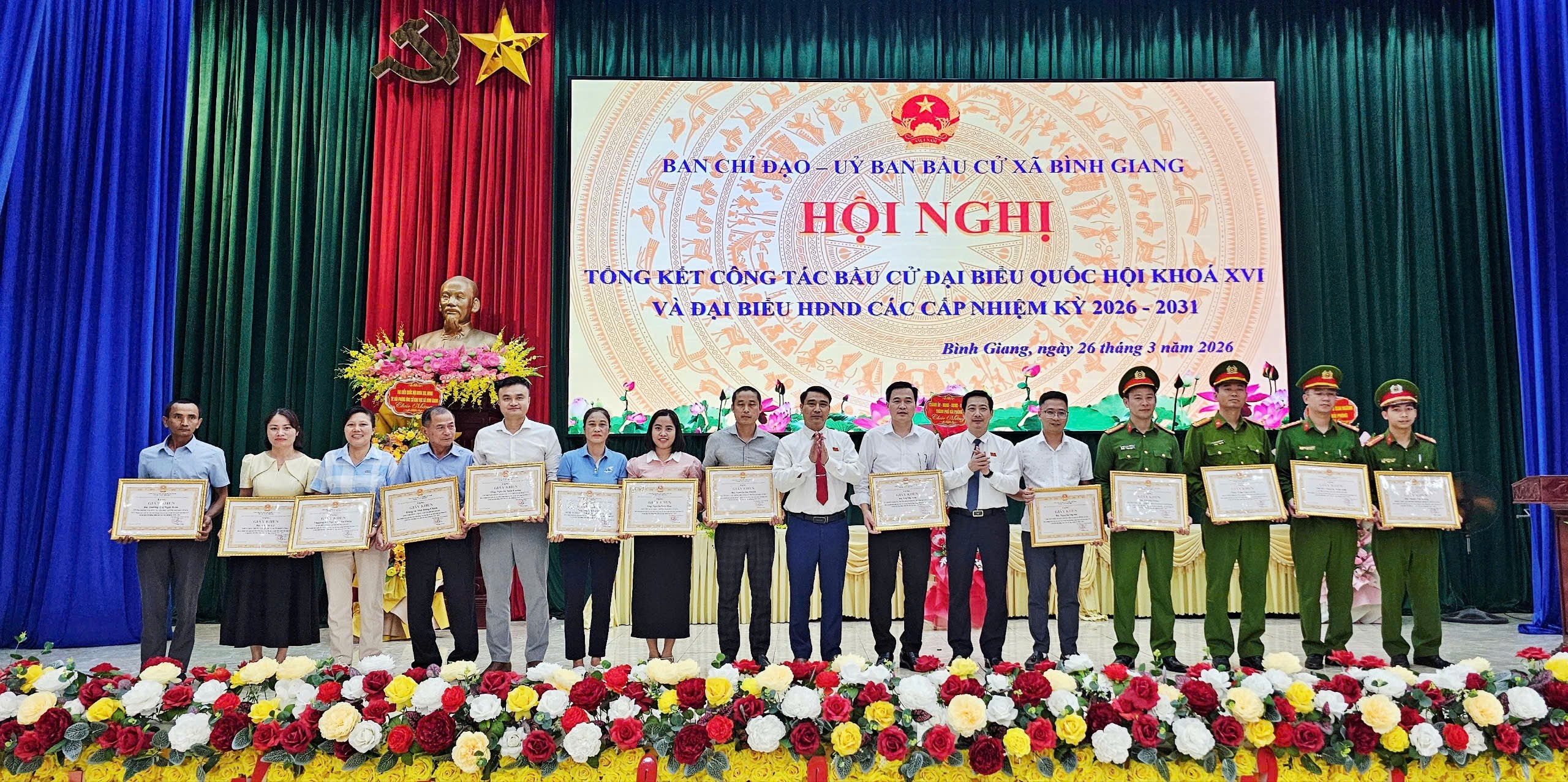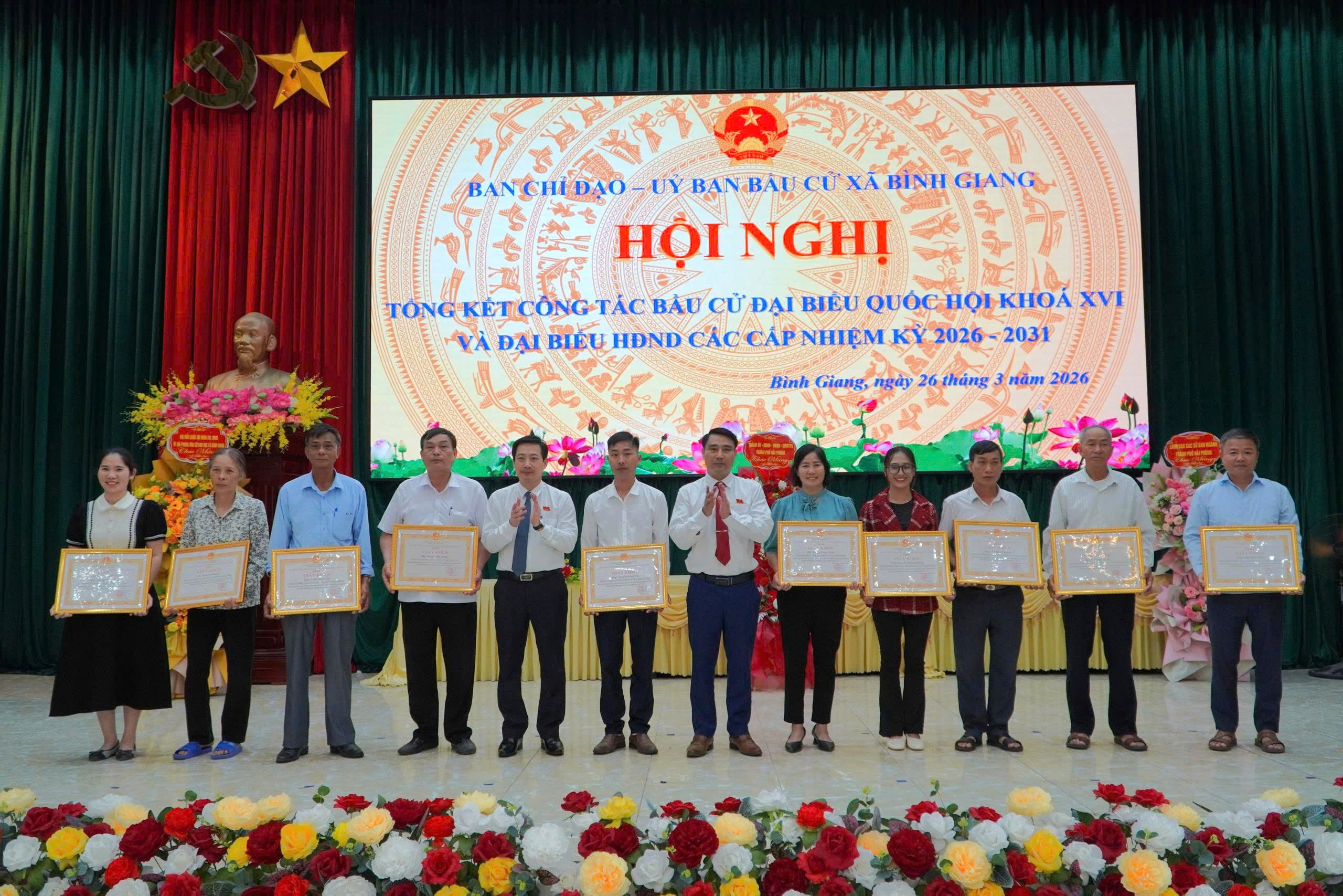 Sáng ngày 26/3, Ban chỉ đạo, UBBC xã Bình Giang tổ chức Hội nghị tổng kết công tác bầu cử đại biểu Quốc hội khóa XVI và đại biểu HĐND các cấp nhiệm kỳ 2026–2031.